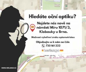 Optika Herlango v Kloboukách u Brna Datum: 11.11.2025 Optika Herlango oznamuje občanům, že od 18. listopadu otevírá v Kloboukách u Brna novou provozovnu na adrese nám. Míru 3. Nabízet bude také vyšetření optometristou, na které je potřeba se telefonicky objednat na č. 730 161 222.