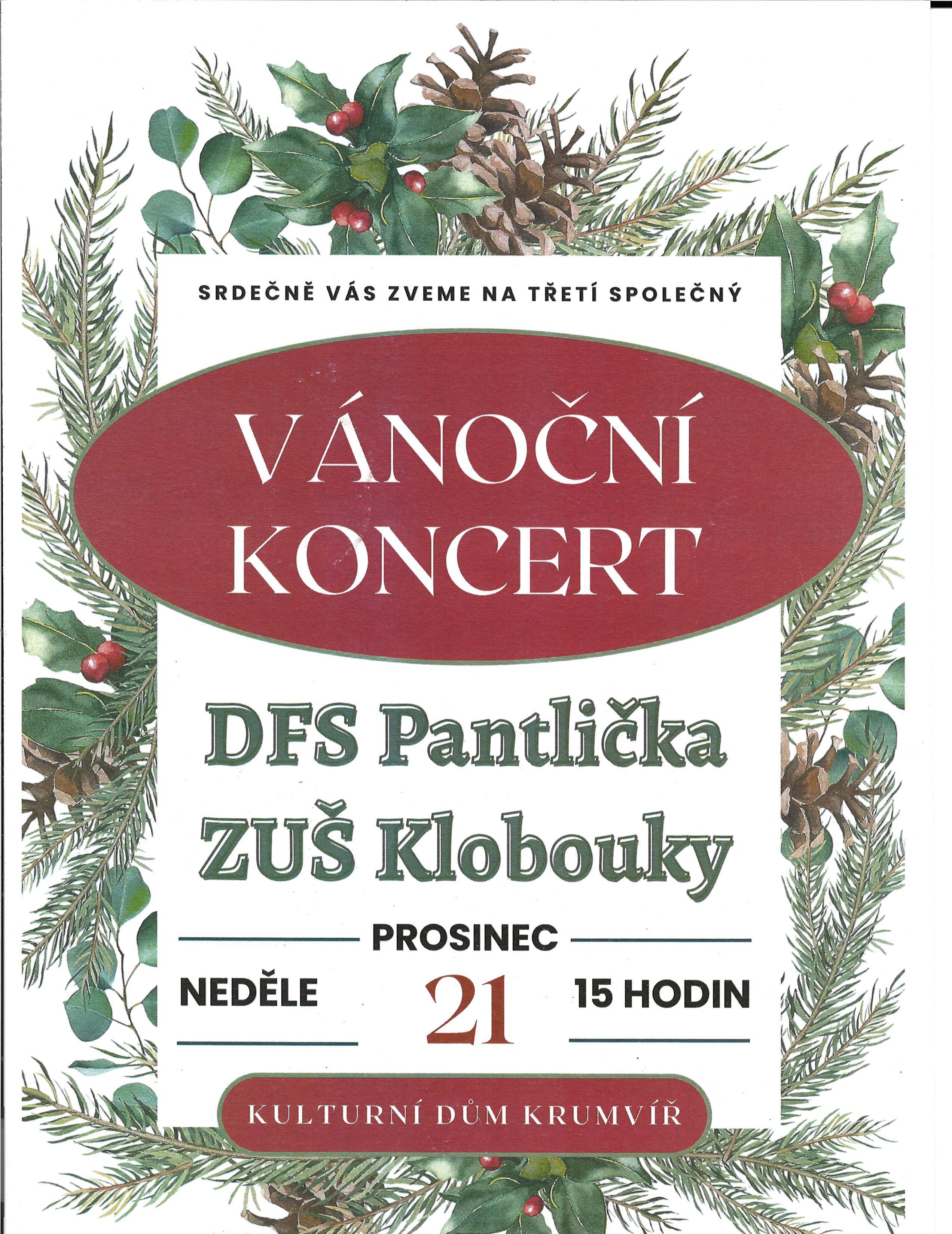 DFS Pantlička a ZUŠ Klobouky – Vánoční koncert v neděli 21.12.2025 v 15h v KD Krumvíř