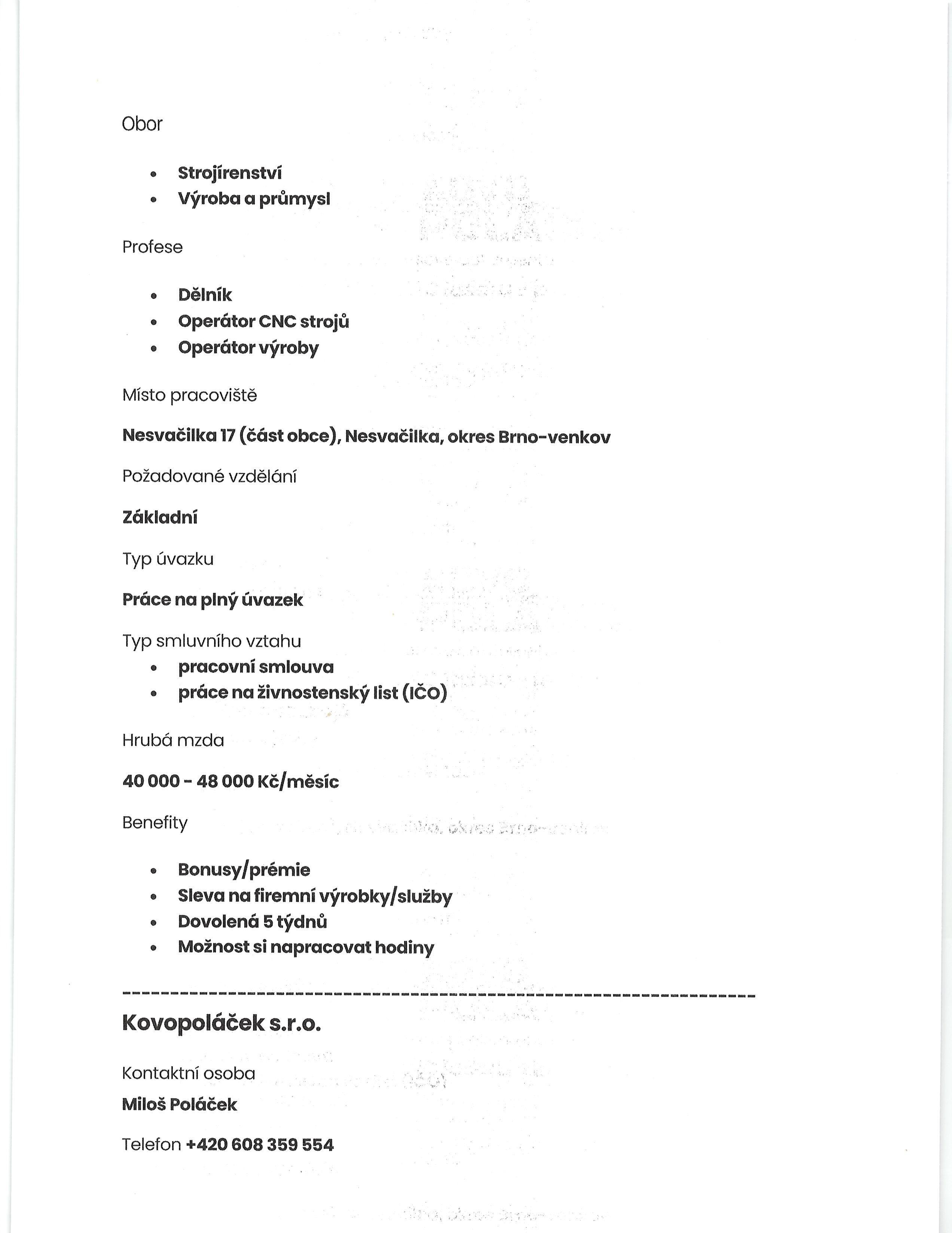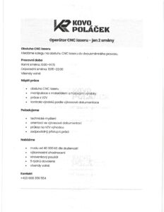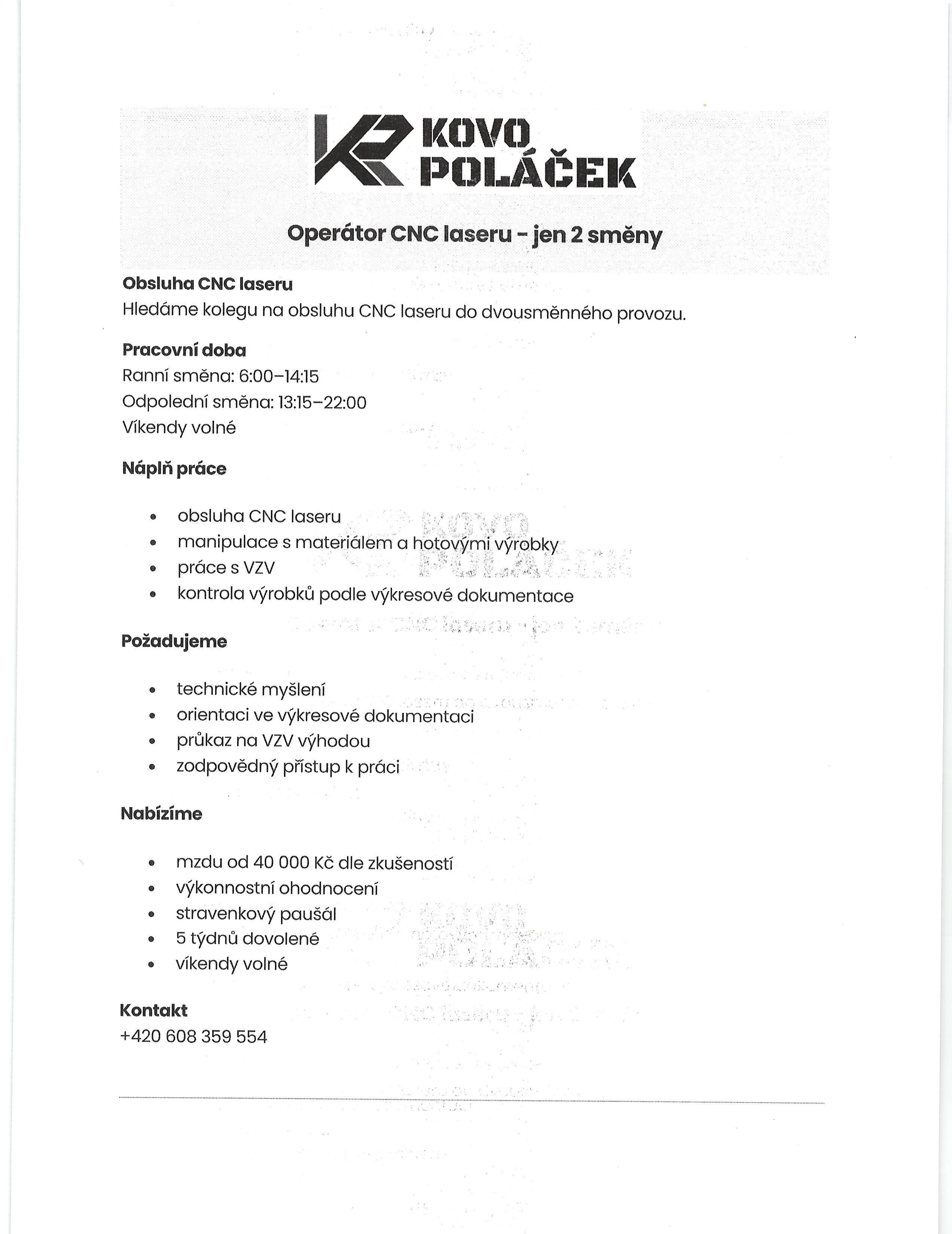 Kovo Poláček Nesvačilka – operátor CNC laseru – jen 2 směny